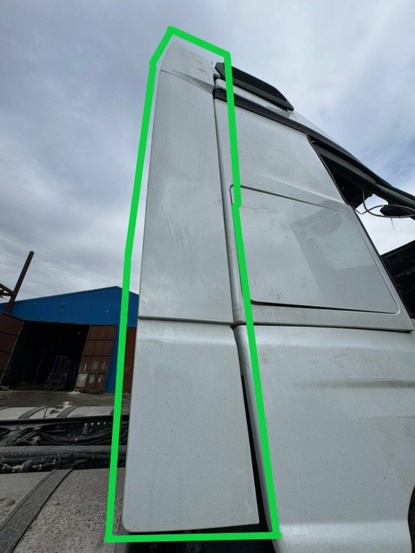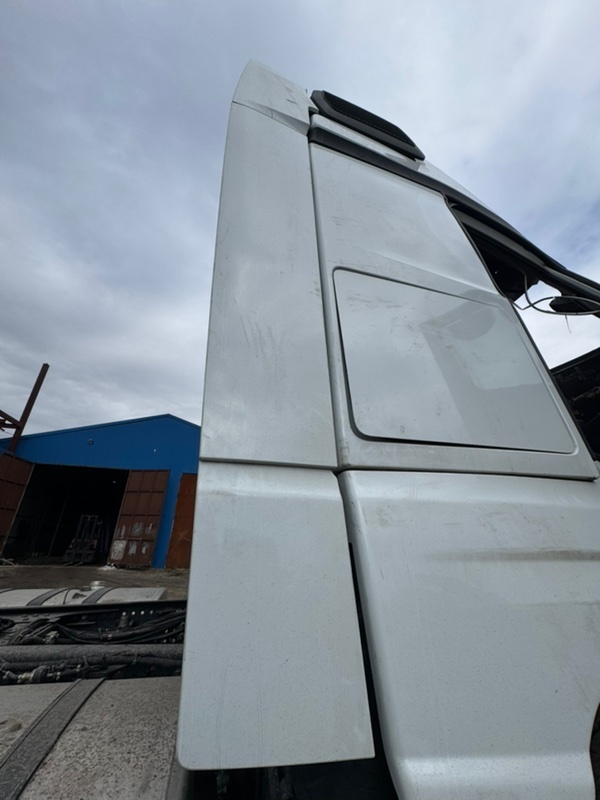 Спойлер кабины боковой с поворотом, поворачиваемый, нижний правый белый цвет, боковой, обтекатель, облицовка, отражатель. На кабину, в сборе с кронштейнами_x000D_