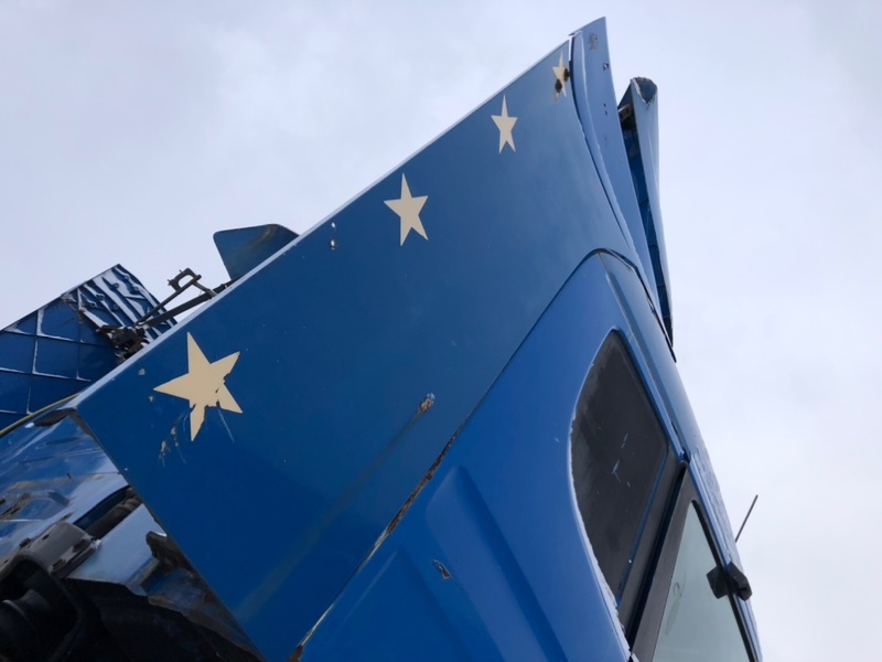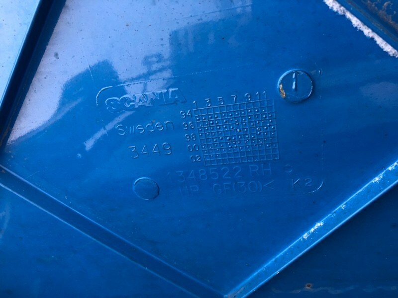 Спойлер кабины боковой правый, справа, сбоку, синий, R, RH. Обтекатель каркаса, сглаживатель ветра, обвес, спойлер боковой. В сборе с кронштейнами._x000D_